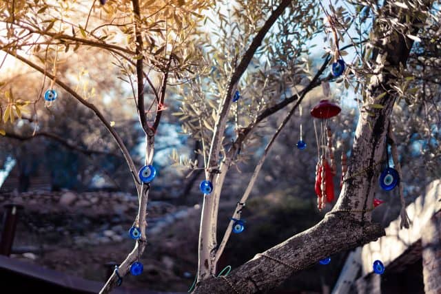 El amuleto Nazar puede ser llevado por niños o animales, fijarse en la casa o colgarse de un árbol cerca de un campo o jardín para ofrecer protección.
