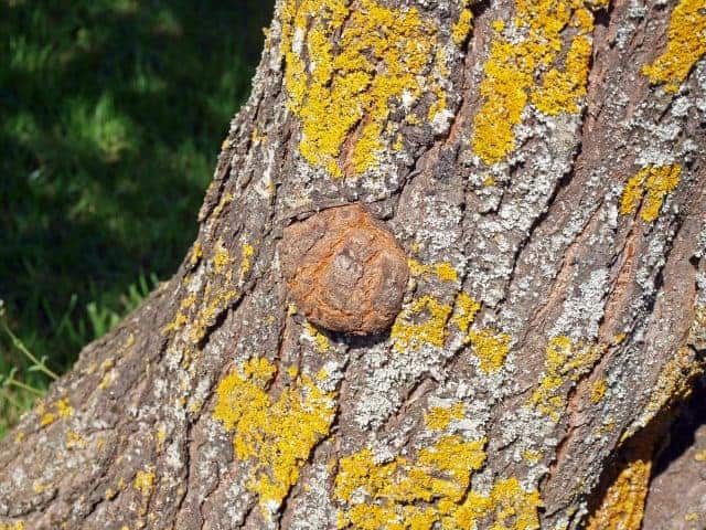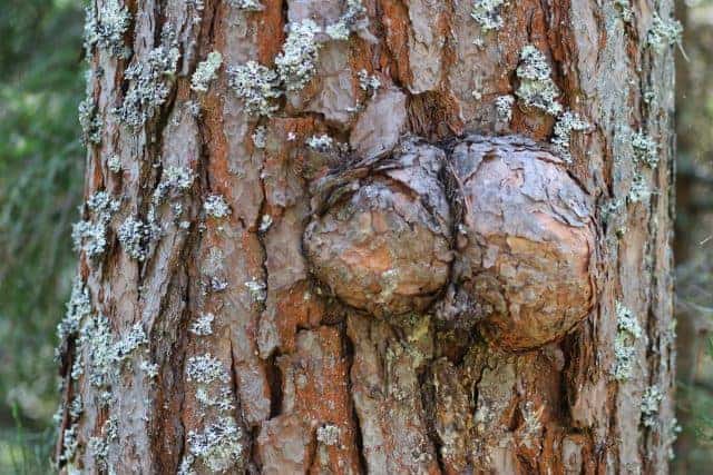 El árbol comienza entonces a proteger la zona afectada formando un tejido nudoso y verrugoso alrededor de la «cicatriz».